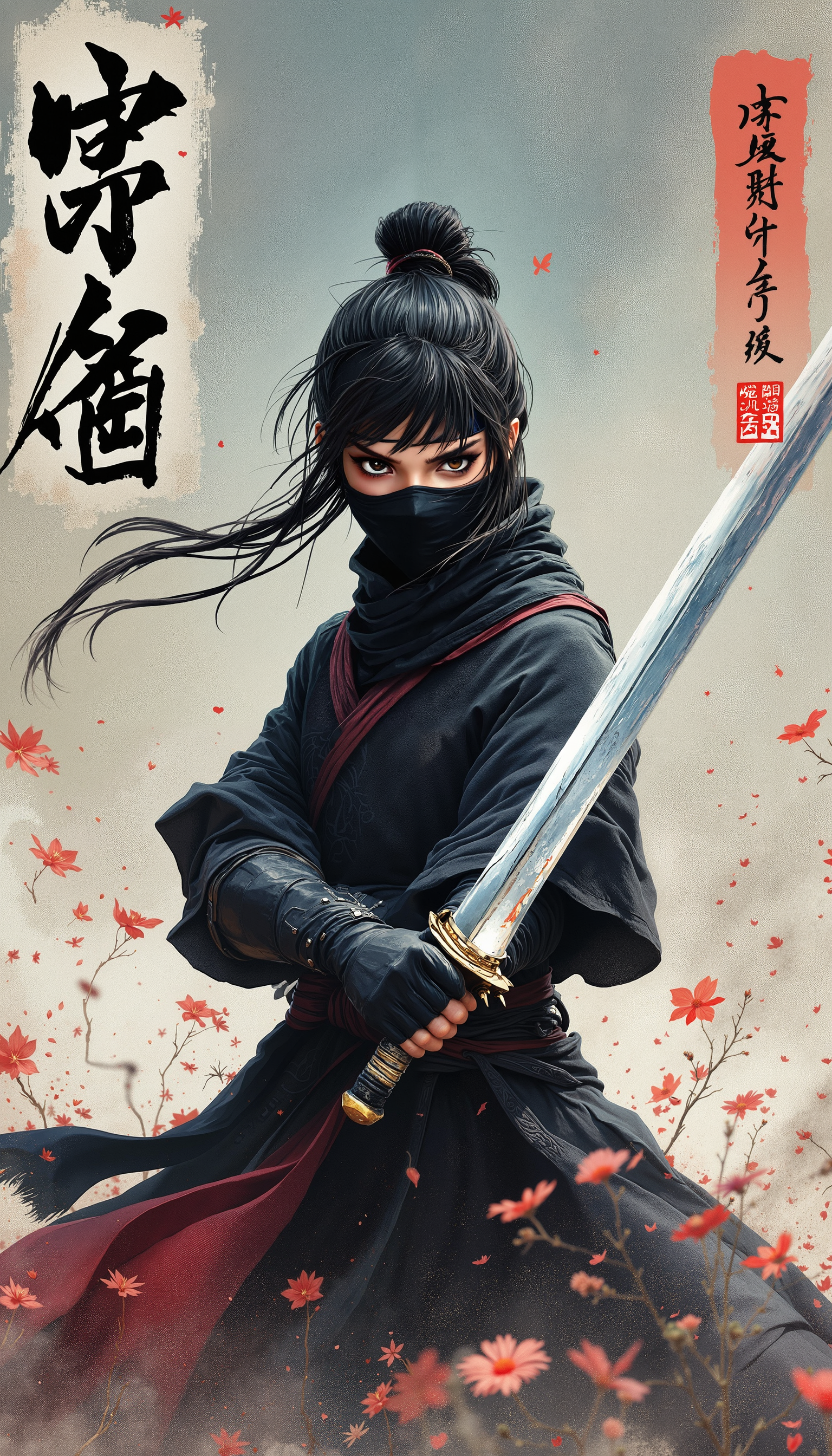 This series explores the power, stillness, and intensity of AI-generated female Ninja warriors—rendered in a style that fuses futuristic drama with Japanese brushstroke aesthetics. Each piece was generated using CGdream, with carefully tuned prompts designed to capture tension, bold contrasts, and cinematic framing.